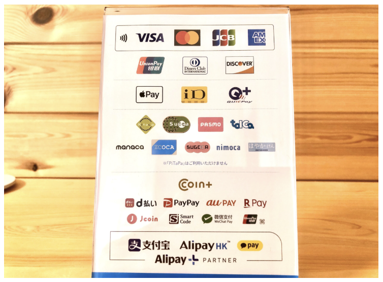 PayPay、d払い、auPAY、apple Pay、QUIC Pay、Union Pay